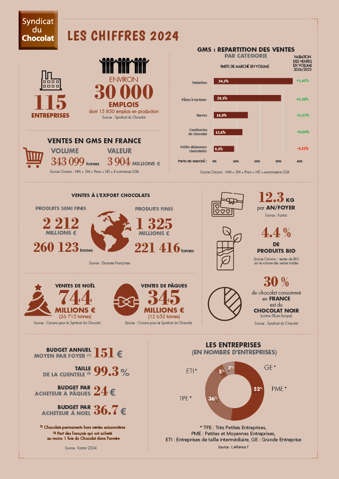 Accueil / ECONOMIE ET MARCHE / Chiffres clés / Chiffres clés de la profession – Syndicat du Chocolat (2024)